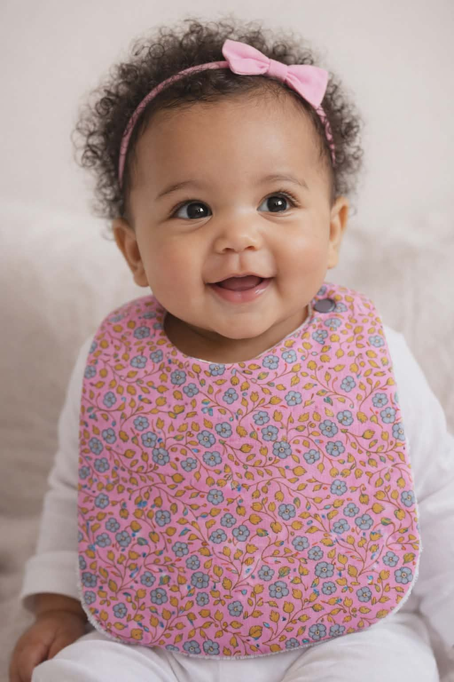 Bavoir Modèle Jeanne (fond rose)