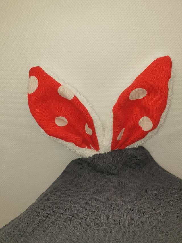 Doudou en double gaze de coton avec oreilles tissu et éponge