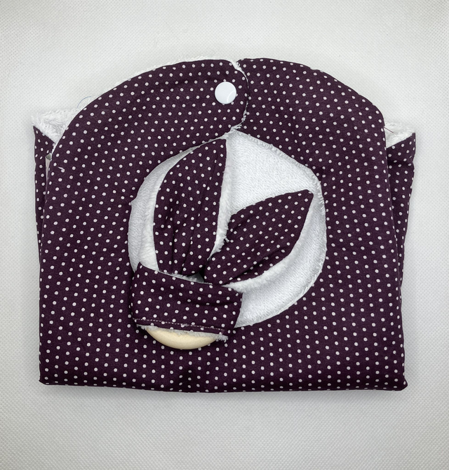 Anneau de dentition en bois non traité, coton imprimé Oeko-tex et éponge bambou