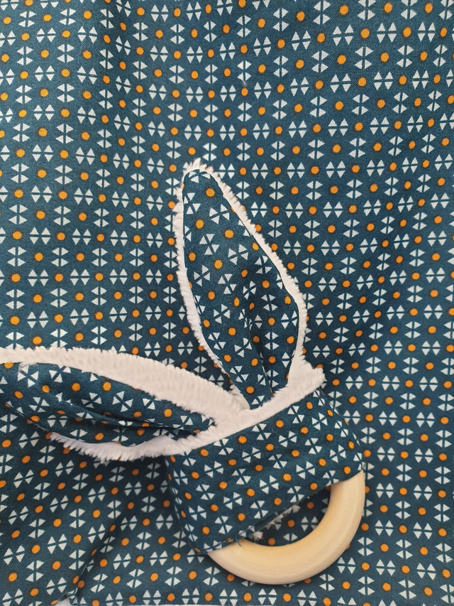 Anneau de dentition en bois non traité, coton imprimé Oeko-tex et éponge bambou